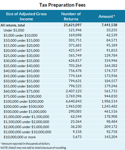 Taxpayers may deduct costs of tax preparation services or tax software.In 2011, 22.1 million taxpayers claimed a total of $7 billion spent on tax preparation fees.