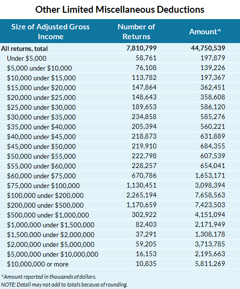 Taxpayers may deduct job and miscellaneous expenses that exceed 2 percent of incomeIn 2011, 11.9 million taxpayers deducted a total of $86 billion of job and miscellaneous expenses that were in excess of 2 percent of their adjusted gross income.