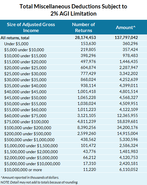 Taxpayers may deduct job and miscellaneous expenses that exceed 2 percent of incomeIn 2011, 11.9 million taxpayers deducted a total of $86 billion of job and miscellaneous expenses that were in excess of 2 percent of their adjusted gross income.