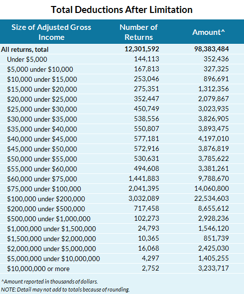 Taxpayers with income under specified limits may claim the full value of their itemized deductions.Itemized deductions are not limited for single tax filers with an AGI under $250,000, heads of household with an AGI under $275,000, and married couples who file jointly and have an AGI under $300,000. Line 29