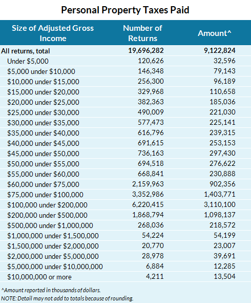 Taxpayers may deduct taxes paid on personal property (such as cars, motorcycles, and recreational vehicles) but only to the extent that they are levied based on the value of the property.Taxpayers deducted $8.3 billion of personal property taxes paid in 2011.