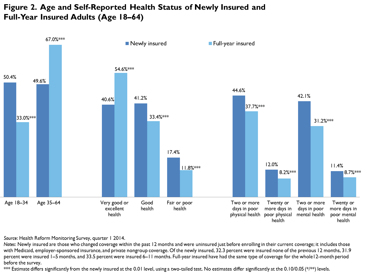 Knowledge about the characteristics of these newly insured individuals provides an early assessment of how well the different components of the ACA are working at expanding coverage as of early March. Further, information on the health needs and health care experiences of newly insured individuals is important for understanding their likely health care demands as they gain coverage, along with their potential effect on the risk pools in private and public insurance programs.