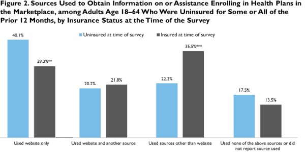 Even motivating more uninsured adults to visit the Marketplace is unlikely to be enough, however. Some who remained uninsured and sought information on Marketplace health plans may have been much harder to reach with information they understood during the initial open enrollment period. For both the uninsured who did not visit the Marketplace and for those who visited but may not have understood the information available, a different and more aggressive outreach and education plan is clearly necessary.